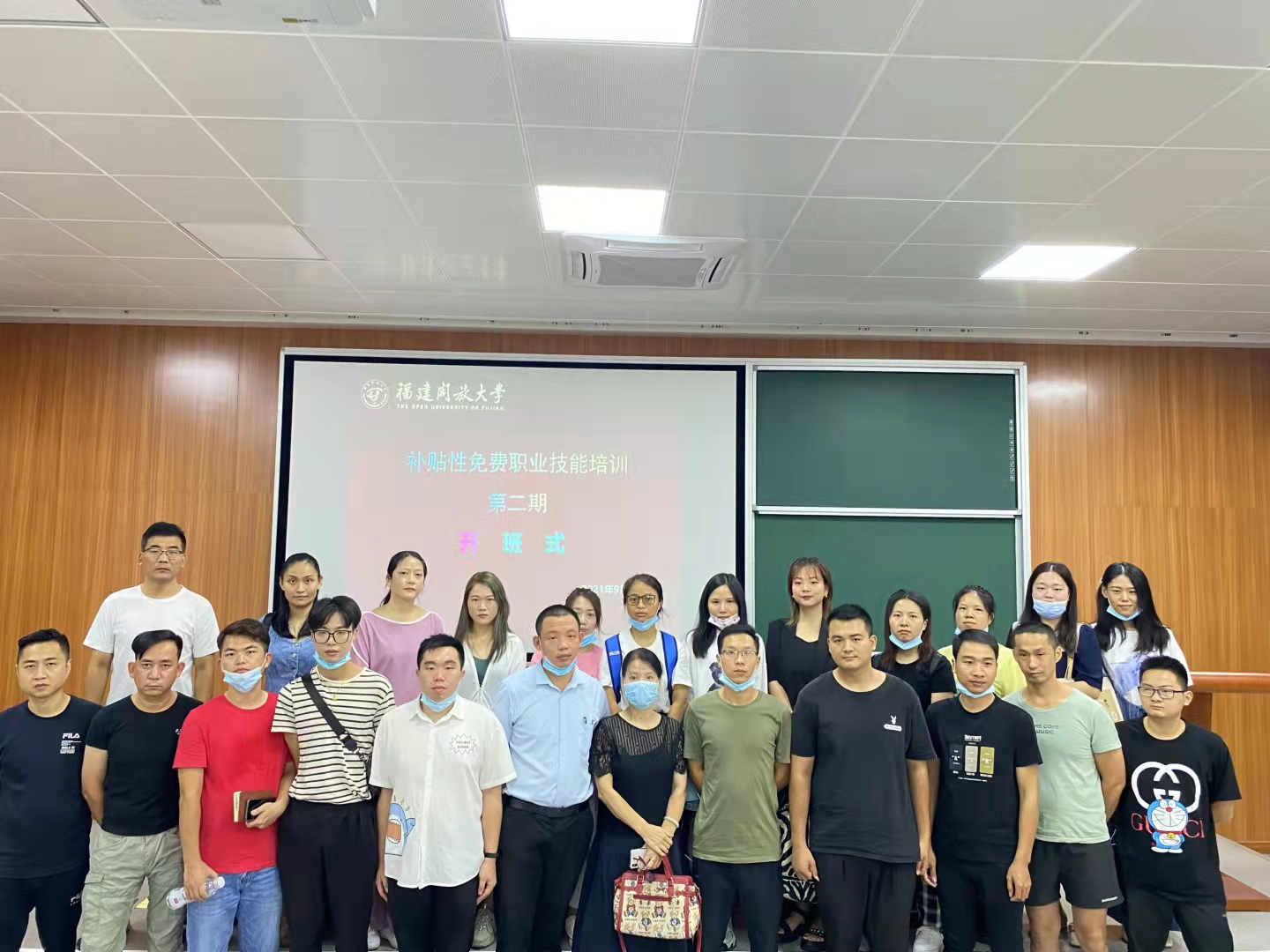 9月11日,福建开放大学第二期职业技能培训班于桂山校区博厚楼一楼阶梯教室召开开班式。本期培训为福建开放大学与晋安区人社局共同举办的补贴性免费职业技能培训的延续项目,职业学院承担培训教学的组织与实施工作。前期共有83名学员报名参加三个工种的培训(办公软件应用操作30人、AutoCAD计算机辅助设计22人,健康管理师31人)。培训分两个阶段进行:第一阶段面授阶段安排于9月11日至12日在桂山校区进行实操训练,第二阶段安排学员于9月25日前完成线上平台学习。培训班开班当天因莆田仙游新冠疫情爆发,培训工作小组按疫情防控要求做好学员26日后莆田仙游旅居史排查、入校登记、亮码戴口罩、座位间隔等工作。受疫情等因素影响,开班当日实际报到学员64名,中间另有3人请假,最终完成线下面授培训的共61名学员。