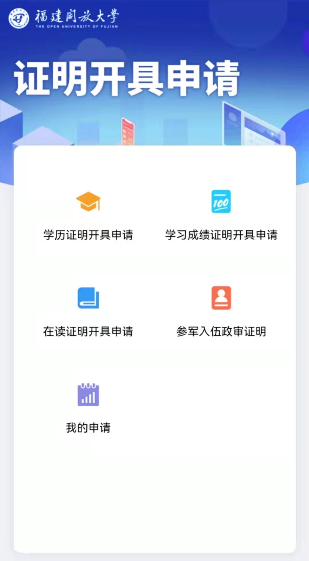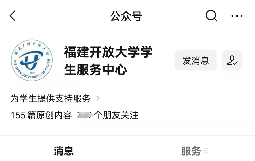 在微信中搜索“福建开放大学学生服务中心”即可找到该服务号。