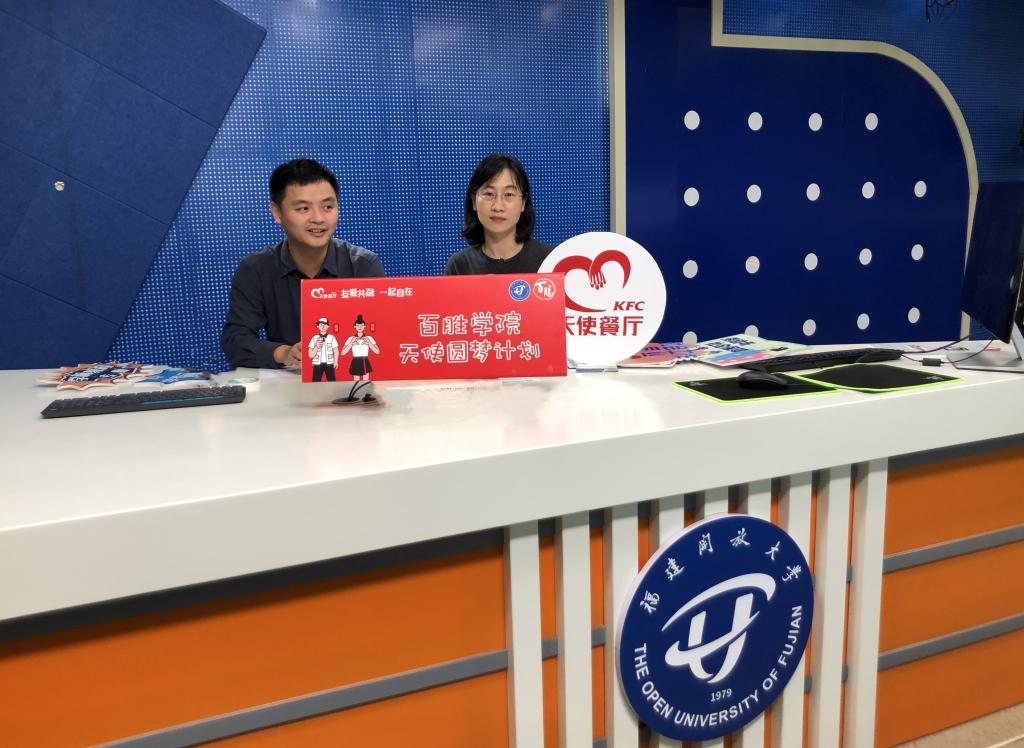 在顺利完成2022年春季招生工作,新生进入开大学习之后,公共管理学院未雨绸缪,提早谋划,落实全院、全年、全专业招生工作机制,宣传2022秋季招生政策。5月25日,学院联合百胜(福州)餐饮有限公司组织了一场特殊的招生宣讲,举办百胜学院“天使圆梦”线上直播带“生”活动,通过网络直播的方式,带领百胜餐厅员工“实地”了解学校的招生办学。