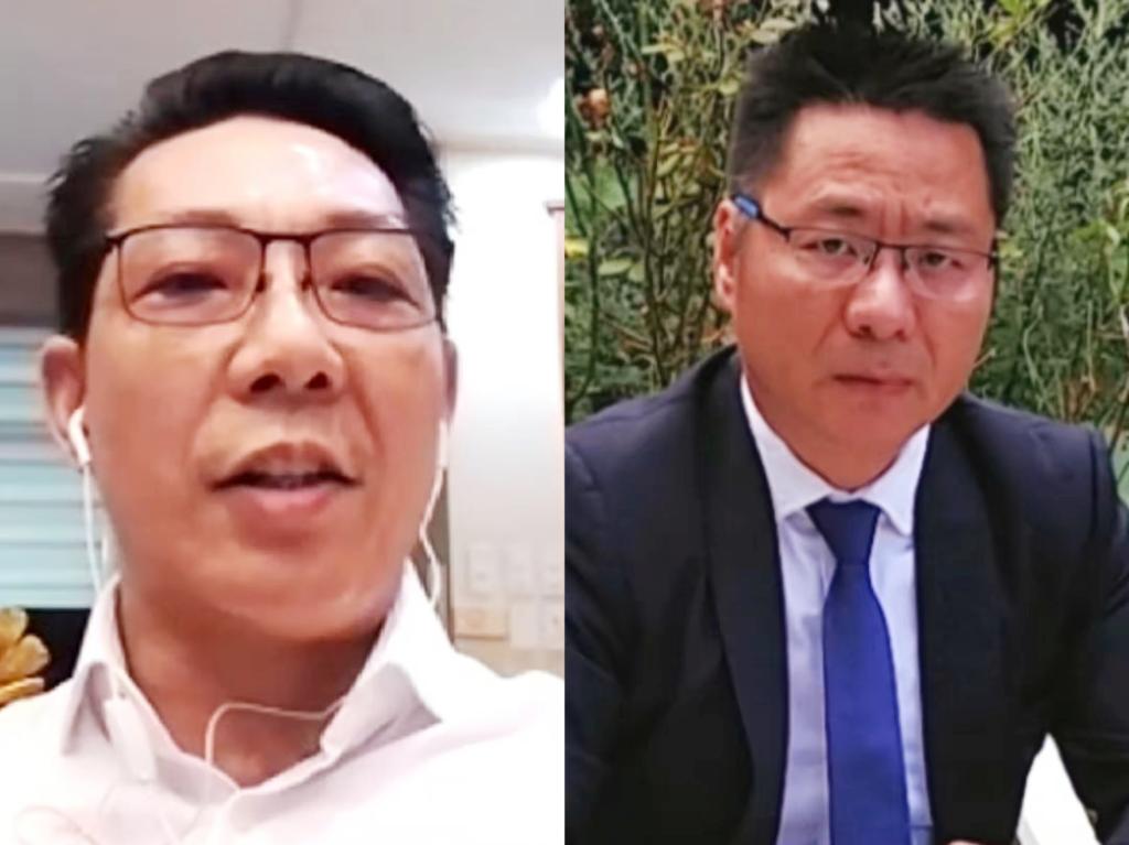 组团单位代表致辞:旅菲各校友会联合会主席张怀义(左)、德国福建商会会长陈云斌(右)
