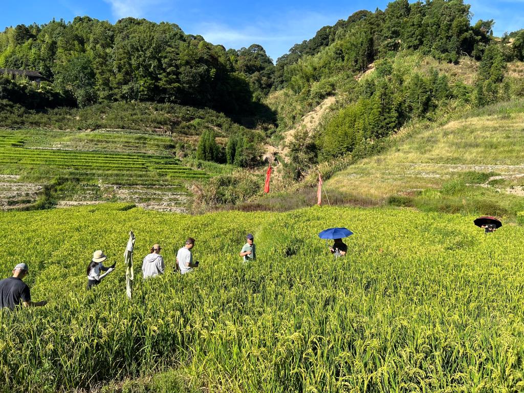 此次调研工作围绕理工学院2021秋农村区域发展本科学生陈仕燕、官彩琴团队的乡村振兴创新创业案例全面展开。海拔830米、天然林覆盖率65%以上的尚锦村曾入选“第二批国家森林乡村”,有着独特的气候条件与优越的生态资源。抵达当日下午,考察队在陈仕燕的陪同下走进田间地头,实地调研尚锦村,考察队一致认为有着天然优势的尚锦村适合作为旅游资源,并认可了开展高山避暑休闲农业项目的可行性。