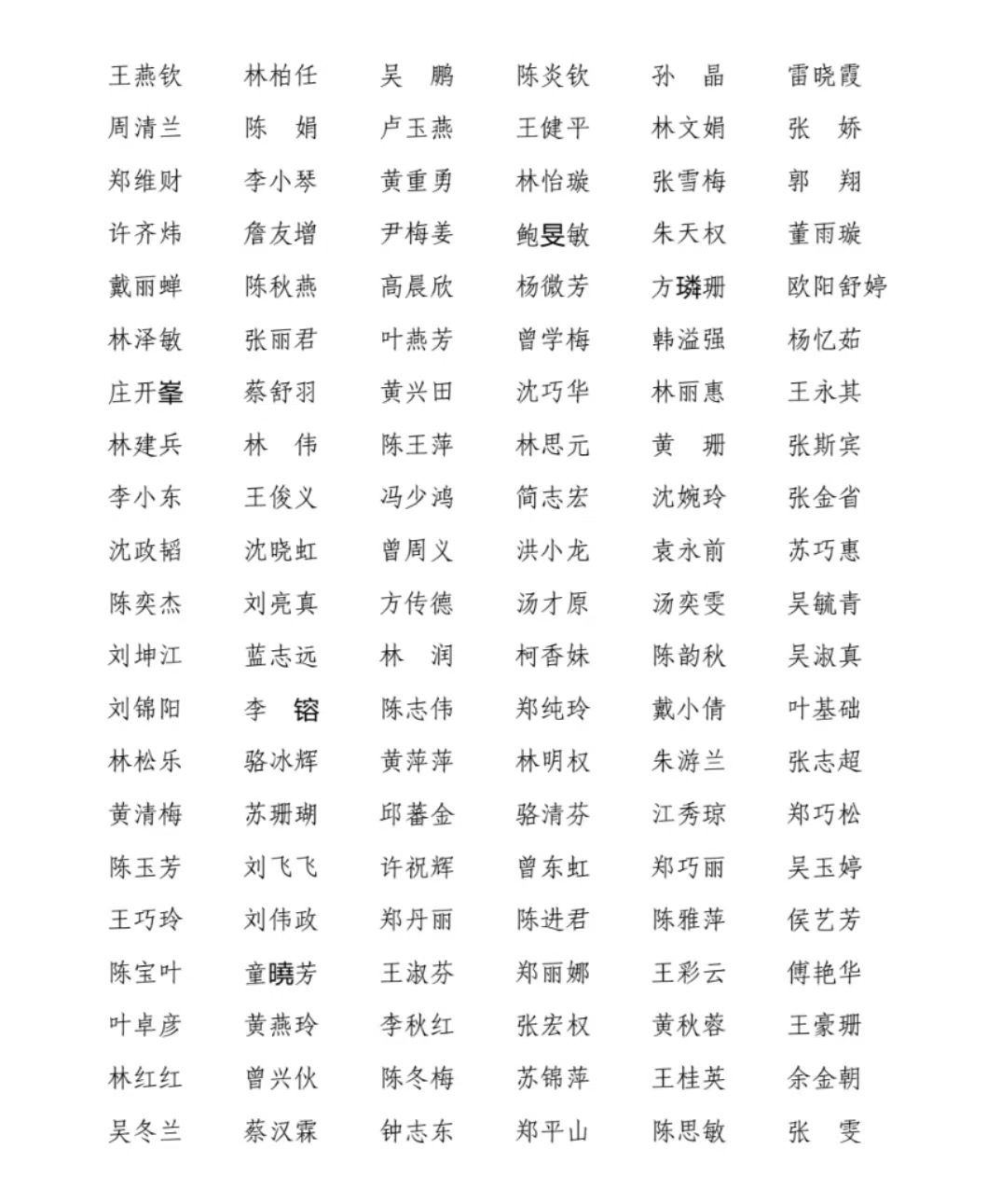 获奖名单
