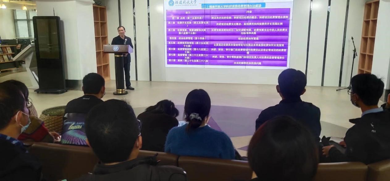 12月8日下午,根据学校第二届学术活动月安排,由科研处处长黄庆安教授主讲的《科研项目申报及科研经费管理文件解读》讲座在明德楼三楼图书馆举行,各专业学院、全省开(电)大系统近百名教师线上、线下同步参与讲座活动。讲座围绕科研项目主题选择与如何写好科研项目申报书、科研经费报销规范以及提高论文投稿录用率的方法等展开深入的介绍。文件解读深入浅出、申报指导务实有效,提高论文投稿录用率的方法切中要害。讲座的最后,黄庆安呼吁大家要倡导学术诚信,抵制学术不端,坚守科研的底线,始终敲响学术的警钟。与会老师认真聆听和记录,一致认为讲座视野开阔,思路清晰,内容紧贴工作实际,对科研项目申报及科研经费规范报销有很强的指导意义。