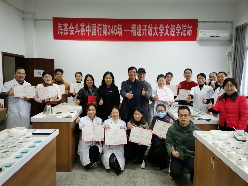 12月15日下午,左海校区茶叶审评实验室宾客云集、茶香四溢,由海峡两岸茶业交流协会主办的斗茶中国行第345场——福建开放大学文经学院站举行。茶艺与茶文化专业师生、茶友共同品茗论道,体验武夷斗茶盛事。文经学院院长王妙真主持活动。