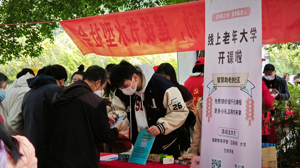 福建老年开放(互联网)大学志愿者在现场积极向老年朋友们介绍福建老年开放(互联网)大学的办学情况,展示宣传福建终身教育公共服务平台的线上精品课程。同时,志愿者们还为老年朋友解答关于智能手机基本设置、微信注册、相机使用、手机字体及亮度调整等一些常见问题,通过“手把手”操作与“面对面”交流,切实帮助解决老年人在智能手机使用方面的困难。