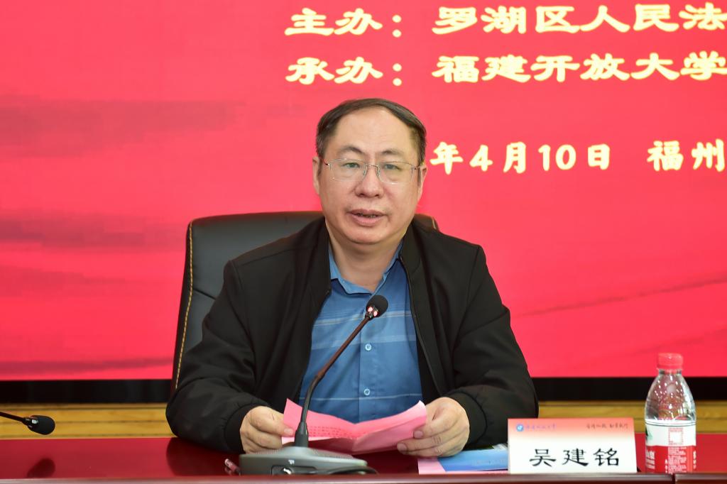 4月10日下午,由深圳市罗湖区人民法院主办、我校承办的深圳市罗湖区人民法院党建专题培训班开班仪式在我校左海校区举行。校党委委员、副校长吴建铭,深圳市罗湖区人民法院党组成员、副院长许云兴出席仪式并讲话。开班仪式由培训学院院长江克英主持,罗湖区人民法院60位党员干警学员参加。