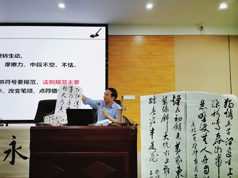 4月20日上午,刘玉兴副教授为2023年春季书法学本科同学们带来《书法基础知识》课程,以丰富的书法知识、生动的鉴赏讲解开启了2023年春季学生书法学本科学习的第一课。