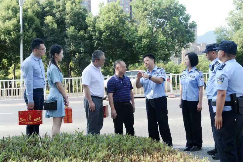 近日来,酷暑天气来袭福州,学院党务工作专业辅警学生们仍坚守在道路一线辛苦执勤。学院负责人罗向阳、裴常山等到罗源县多个执勤岗位慰问学生,为学生送去“清凉”防暑饮品,叮嘱他们做好本职工作的同时,注意防暑降温和个人防护。