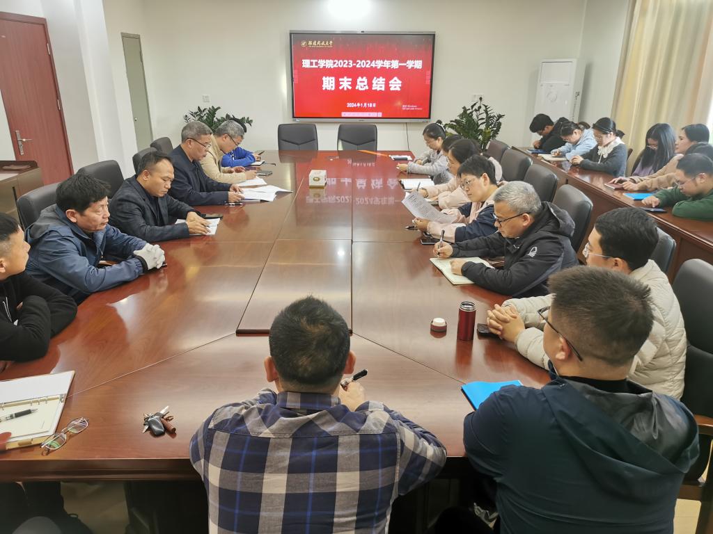1月18日,理工学院召开2023-2024学年第一学期期末总结会暨寒假工作部署会,学院全体教职员工共32人参加会议。院长雷乃旺主持会议。