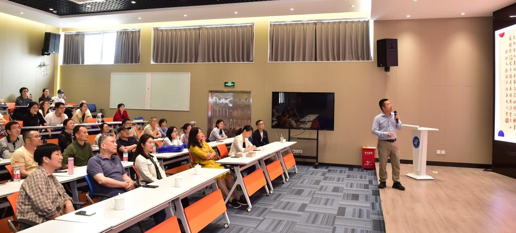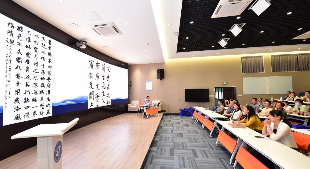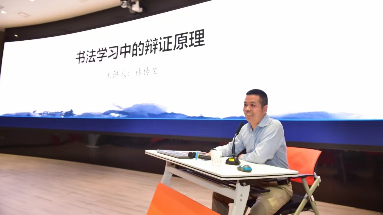 林传生为师生带来《书法学习中的辩证原理》专题讲座,他从观念的辩证思考、结字的辩证关系、章法和形式中的辩证关系以及笔法中的辩证关系等多个方面,深入剖析了书法艺术的内在规律与奥秘。正确的观念是书法学习的基础,而辩证思维则是深化理解书法艺术的关键。他引导大家思考如何在书法学习中运用辩证原理,以更全面、深入的方式理解和体验书法艺术的魅力。林传生老师在“传统”与“创新”、“雅”与“俗”、“疏”与“密”、“收”与“放”等对立统一的概念上结合古代书论和古今作经典书法作品深入分析,辩证看待这些关系,使书法作品更加和谐统一。林老师信手拈来的知识、风趣幽默的语言、图文并茂的资料,让师生沉浸在书法艺术的海洋。讲座现场气氛热烈,师生们积极互动,大家纷纷表示,通过此次讲座,对书法学习中的辩证原理有了更深刻的认识和理解,同时也激发了大家对书法艺术的热爱和追求。