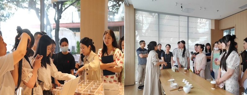 讲座后全体师生兴致勃勃地参观了典雅传统文化与时尚新式茶文化元素完美融合、功能齐全的茶客厅,品饮茶叙交流,通过现场听、品、观将所学知识与实地结合,感受独特茶饮韵味的魅力。