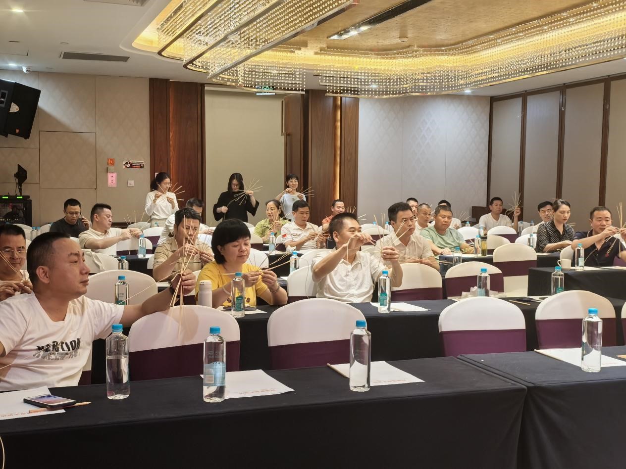 在现场互动环节,学员们在陈红萍的指导下,体验竹编的魅力。一挑一压,竹条在指尖交互缠绕,散乱的蔑片经过巧手的编织渐渐有了形状,一根根竹条错落有致、紧密相连,呈现出了一幅美丽的新时代画卷。