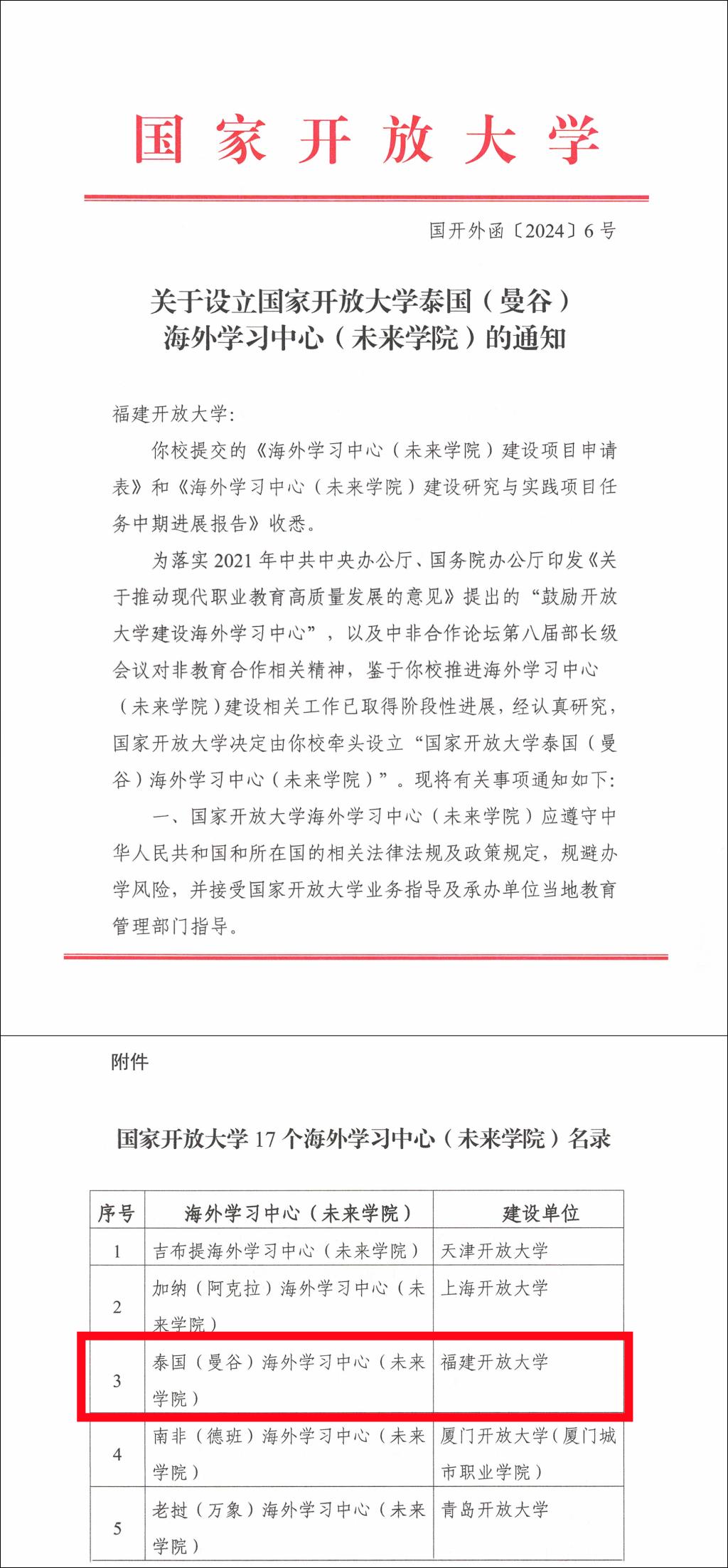 近日,国家开放大学公布首批建设的海外学习中心(未来学院)名录,我校华侨学院曼谷学习中心入选国家开放大学17个海外学习中心(未来学院),负责在原有基础上牵头建设国家开放大学泰国(曼谷)海外学习中心(未来学院)。