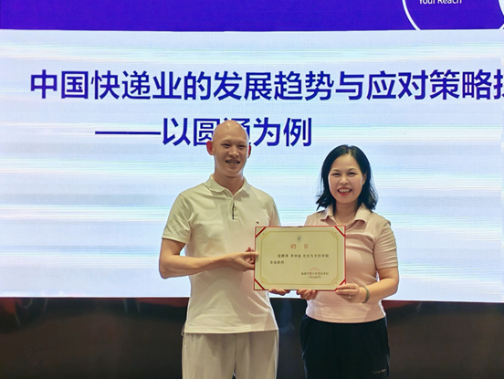 课堂上,李学国分享了圆通速递的发展历程和企业文化,详细介绍了圆通自主研发的AI助理,针对当前快递物流行业的最新趋势进行了深入分析,并与学生们进行了互动交流。他强调了创新思维和实践能力在行业发展中的重要性,并鼓励学生们积极思考,勇于探索,为未来的职业生涯打下坚实的基础。