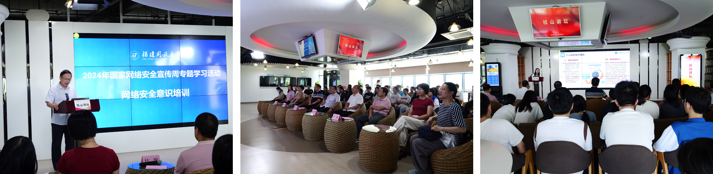 9月12日下午,学校邀请福建省海峡信息技术有限公司的高级安全咨询顾问为师生作网络安全教育讲座暨桂山讲坛讲座。讲座由信息化中心主任詹立彩主持,学校党委宣传部、保卫处、职业学院、资源建设与管理中心相关负责人及部分教职工、职业学院学生代表参加培训。