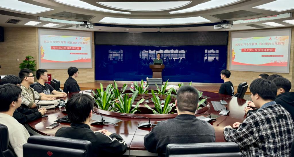出发前,带队老师强调了实习期间的安全事项,叮嘱学生牢固树立安全意识,确保学生顺利安全到岗。抵达企业后,校企双方紧密合作,协助学生办理报到、入住等手续。随后,校企联合召开实习动员大会,带队老师周健围绕实习安全、廉洁从业等内容发表讲话,鼓励学生们诚实守信、爱岗敬业、勤勉工作,自觉遵守规章制度,展现良好的职业道德风貌。