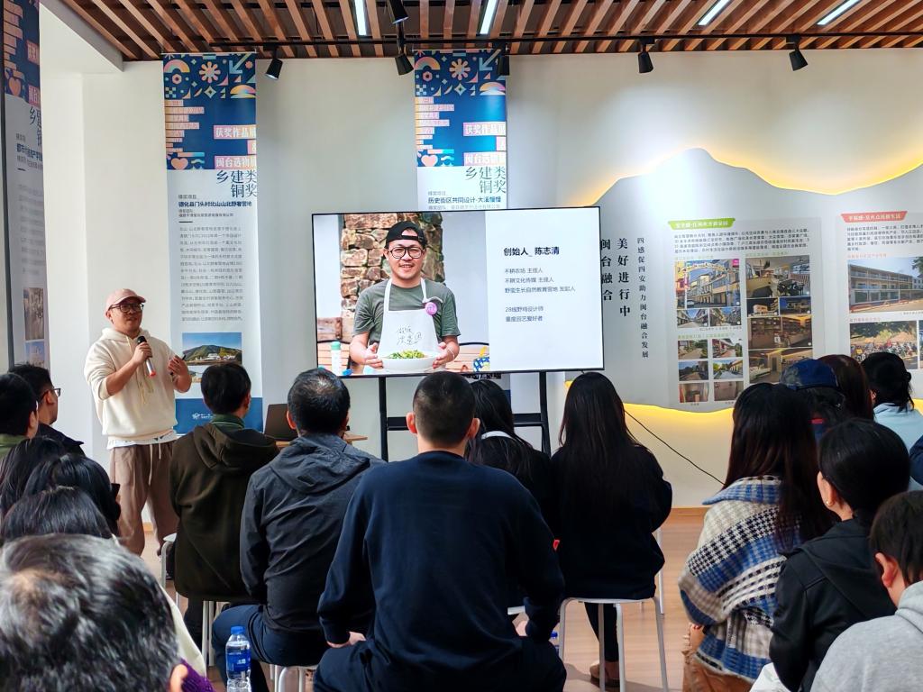 在古田县水口镇不耕农场咸鱼营地项目,福建不耕农业发展有限公司主理人陈志清讲述了把一片废墟变成“最美农场”的艰辛创业历程,介绍了尊重节律、拒绝“拔苗”、让作物自然生成的不耕文化理念,分享了近年来配合地方政府开展乡村治理和农业产业规划的探索实践,激励广大青年学子扎根基层、走进乡村,用实际行动助力乡村振兴,淬炼能力本领,彰显开大人的使命担当。同学们现场体验了咸鱼营地休闲农业项目,增强了对因地制宜发展现代农业的信心。