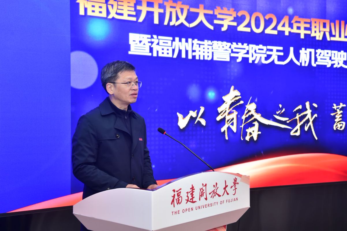 12月16日上午,2024年职业技能提升专项行动暨辅警学院无人机驾驶员培训班开班仪式在桂山校区智慧教室举行。校党委副书记马成斌,福州市公安局党委委员、政治部主任郑南出席会议,理工学院、职业学院与福州市公安局相关领导,以及来自福州各分局和交警支队的政治处主任、百余名参训辅警代表参加会议。会议由理工学院副院长黄林昊主持。