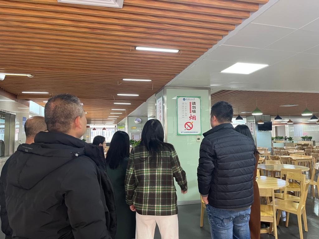 专家组一行先后深入学生服务中心、校园警务室、禁毒宣教室、教学楼、实训楼、食堂等场所,实地查看校园环境、硬件设施、文化建设、健康教育等情况。专家组成员随机进入教室、办公室,查看老师和学生的健康行为习惯。初评过程中,专家组对学院健康教育工作给予了高度评价,特别对学校食堂标准化建设表示肯定。最后,专家组对此次初评工作提出了具体的意见和建议。