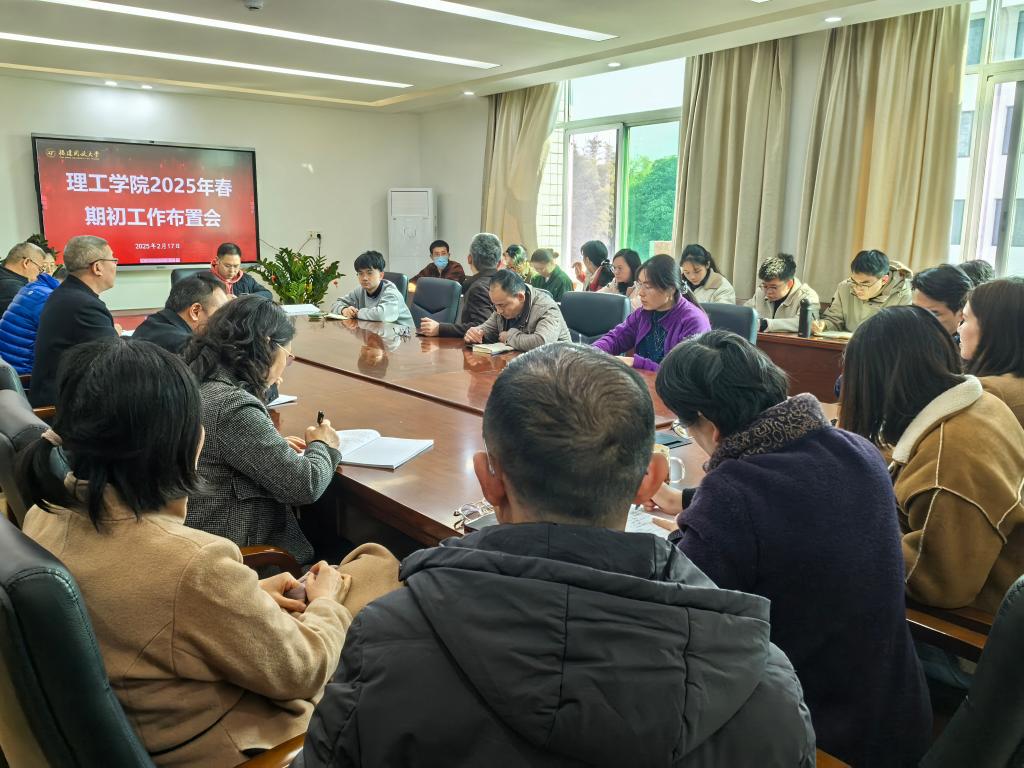 2月17日下午,理工学院在综合楼三楼会议室召开了2025年度第一次全体教职工大会。学院全体教职工参加,会议由院长雷乃旺主持。