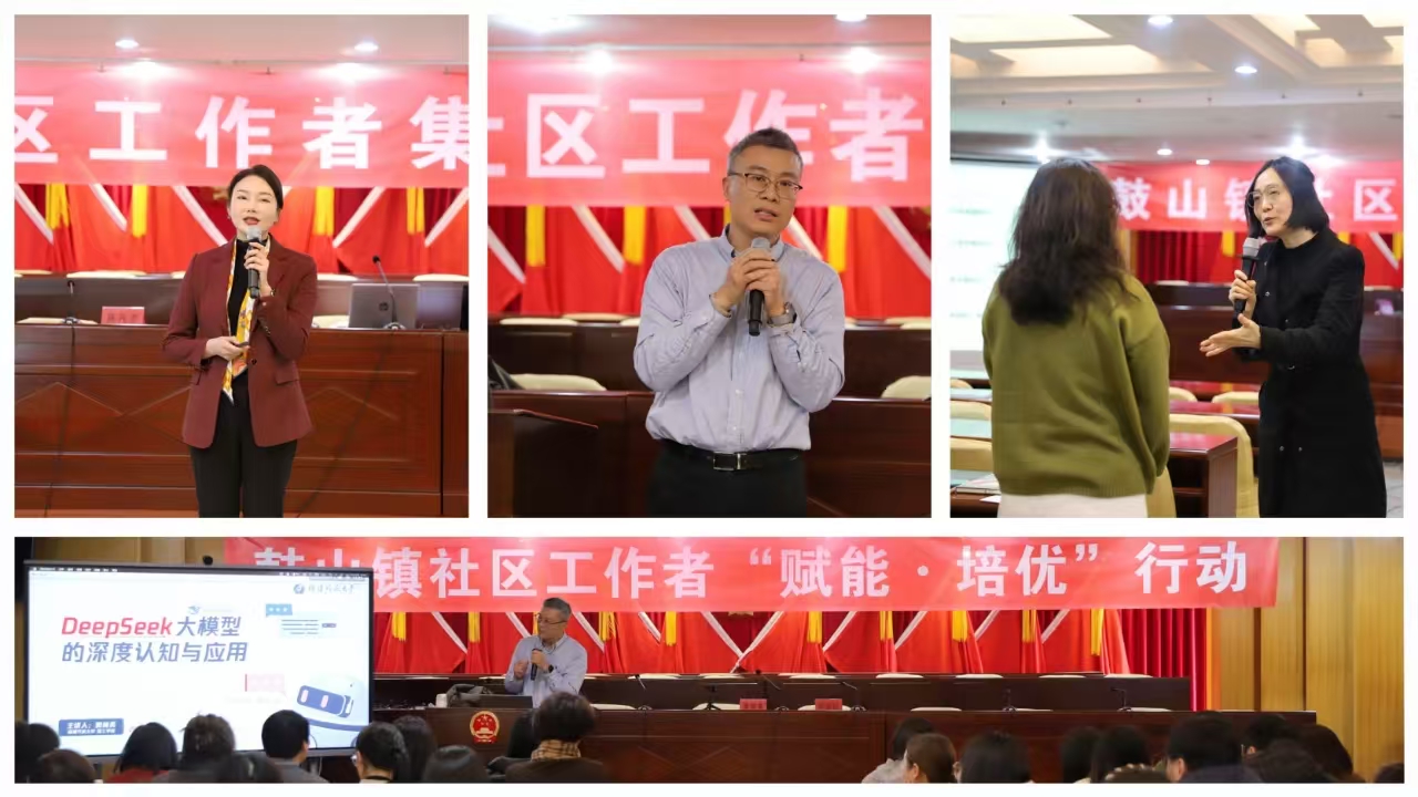 2月27日,题为“DeepSeek的深度认知与在社区工作中的应用”专题培训如期举行。理工学院黄林昊老师从DeepSeek入手,系统讲解了大模型的基本概念,通过生动案例和现场演示,让晦涩的技术概念转化为通俗易懂的知识,帮助参训人员深化对模型应用的理解,探索如何利用人工智能技术优化社区日常工作流程。