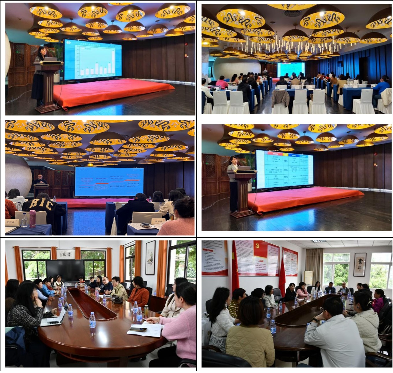 研讨会专题报告环节,省校英语教学团队的三位教师分别就英语智慧教改、课程思政建设、教学团队建设等议题作专题报告。王小红介绍了过去三年人工智能赋能英语教学改革试点取得的经验,同时从全省教学实践角度,用详细的统计数据对不同地区的学位英语成绩进行了分析。陈晴分享了本科公共英语智慧教改考核说明,详细阐述了教学改革的五大方面,同时就人文英语教学团队的建设情况进行了总结。韩瑞峰介绍了公共英语课程思政教学名师工作室的建设情况及近年公共英语教学团队对课程思政的探索,同时对专科公共英语智慧教改考核进行了说明。交流研讨环节,参会教师结合当地办学实际,就推动以赛促学、公共英语智慧教学改革方案、课程思政建设、课程团队建设、教师职业发展等进行了深入的研讨。