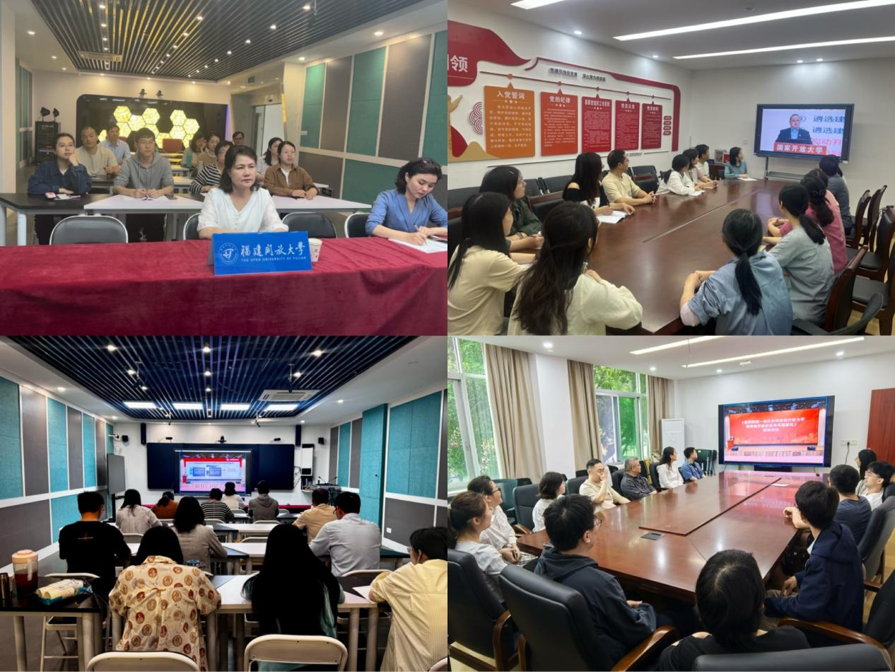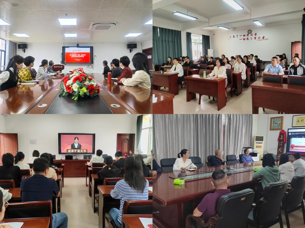 线上线下联动,共同参与学习。活动采取线上线下结合的形式,国家开放大学直播平台实时推送,确保全省办学体系全覆盖。教务处、科研处、党委教师工作部、招生与体系建设办公室、学分银行管理与教学质量评价办公室、马克思主义学院、信息化中心、资源建设与管理中心等部门在桂山校区云教室集中观看;省校各专业学院及市县开放大学分别组织教师在本地会议室同步学习。