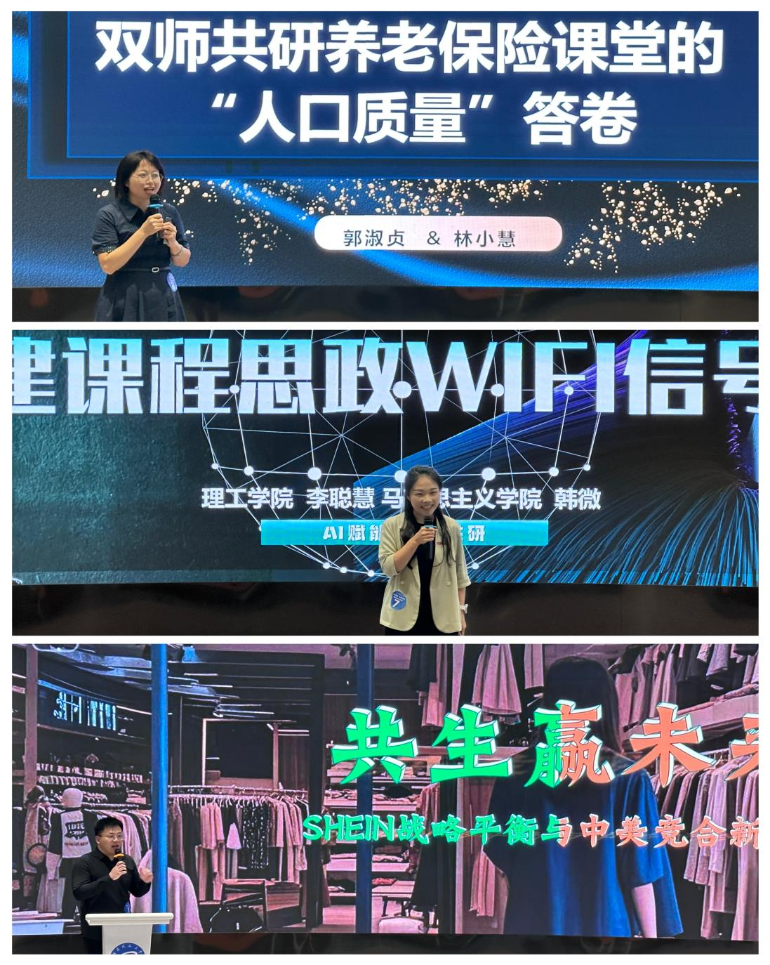 在上午的教学设计阶段,选手们在7个《形势与政策》课程教学专题中随机抽取选题,结合AI工具进行专业课程思政教学设计并提交汇报材料。下午现场说课阶段8组选手轮番上场。比赛过程中,教师们充分展现了对人工智能与教育教学融合的深刻理解和创新实践。他们巧妙地将AI技术融入课程思政教学设计,利用AI工具进行学情分析、教学资源整合、教学活动设计等,以实现精准教学、个性化学习。比赛要求同组教师密切协作,共同探讨如何发挥双师优势,优化教学过程。一位参与比赛的专业课教师表示:“通过这次大赛,我深刻体会到AI为教学带来的巨大便利。它能帮助我更快速地了解学生的学习情况,制定更有针对性的教学策略。此外,与思政课教师的研讨也能帮助我更好地挖掘课程中所蕴含的思政教育资源,形成协同育人的合力放大效应。”
