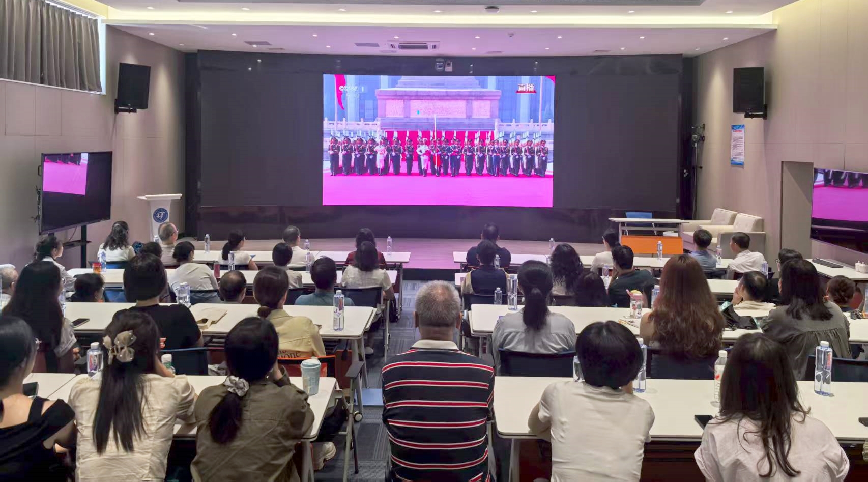 9月3日上午,纪念中国人民抗日战争暨世界反法西斯战争胜利80周年阅兵仪式在北京隆重举行。文经学院组织全院师生观看阅兵直播。