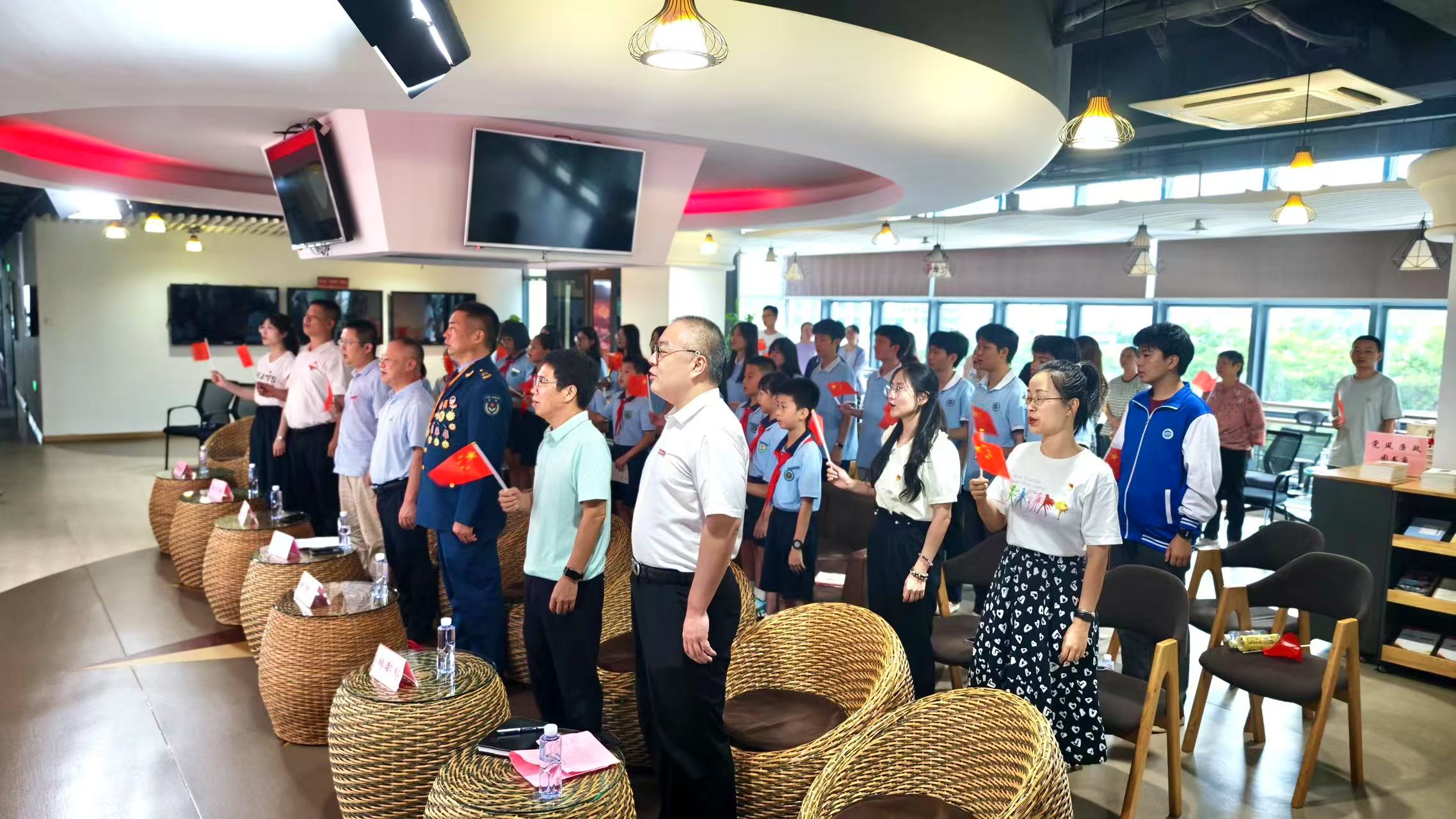 活动尾声,全体师生手持小红旗整齐挥舞,共同唱响《歌唱祖国》。激昂的旋律回荡全场,嘹亮的歌声表达着对祖国的深情祝福,对国防的责任担当。
