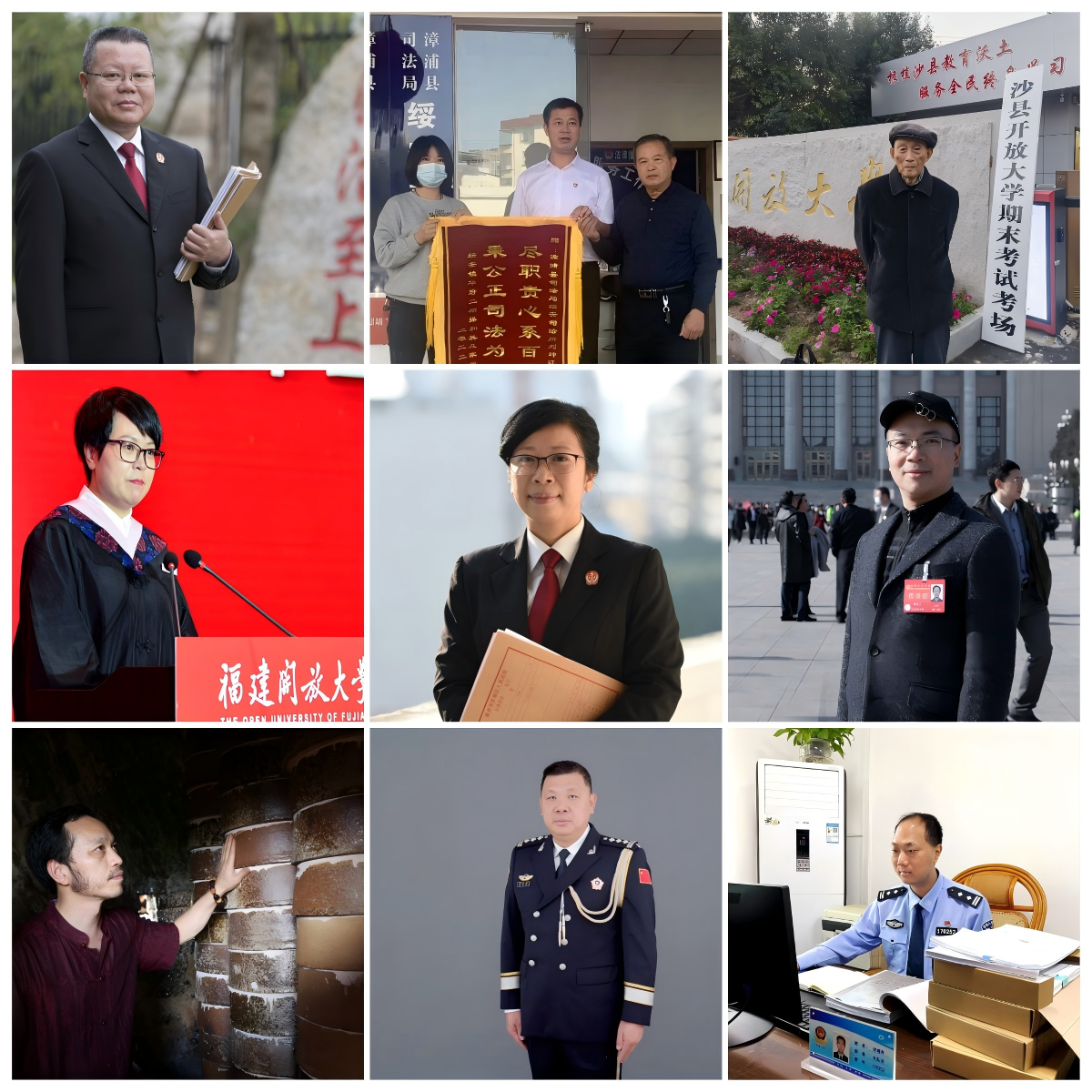 此次入选的9位校友均为各行各业的标杆人物,他们是:时代楷模、老百姓的“知心法官”黄志丽,全国模范法官陈少华,全国脱贫攻坚奋进者郑月娥,福建省最美退役军人刘坤江,警界的尖刀、全国特级优秀人民警察许鸿升,全国优秀人民警察洪树棠,“爷爷同学”、终身学习的践行者邓仰清,中国传记文学奖获得者、福建省作协副主席钟兆云,国家级非遗传承人陈明良。