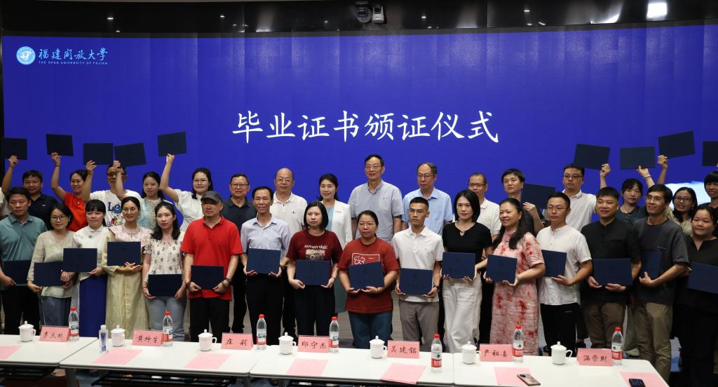 6月13日下午,我校书法学本科专业首次毕业典礼在左海校区举行,来自文经学院、漳州、泉州、宁德开放大学的书法学专业师生代表近百人参与。校领导庄莉、吴建铭,福建省文联副主席邱守杰,福建省书法家协会副主席、秘书长黄坤生,福建省硬笔书法家协会主席严祖喜等出席并为毕业生代表颁发毕业证书。书法学专业2022年春季创办以来,深入学习贯彻习近平文化思想,坚持师资高能、生源高质、导学高配的办学特色,专业办学已辐射省内8个地市、38家市县开放大学,累积招生780人,师生活跃在省内书法教育、创作、研究等多个领域。2025年,学校迎来首批165名书法学专业毕业生,13名毕业生通过积分加入福建省书法家协会。