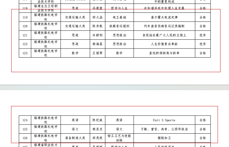 近日,2025年度厅直属中职教学教研联盟校公开课活动结果正式公布,职业学院选派的8名教师凭借扎实的教学功底和创新的课堂设计,全部通过专家评审并获评合格,其中林舒俐、赖海昌老师的思政课程更是脱颖而出,荣获“优秀”等次,充分展现了学院教师队伍的专业素养与教学实力。