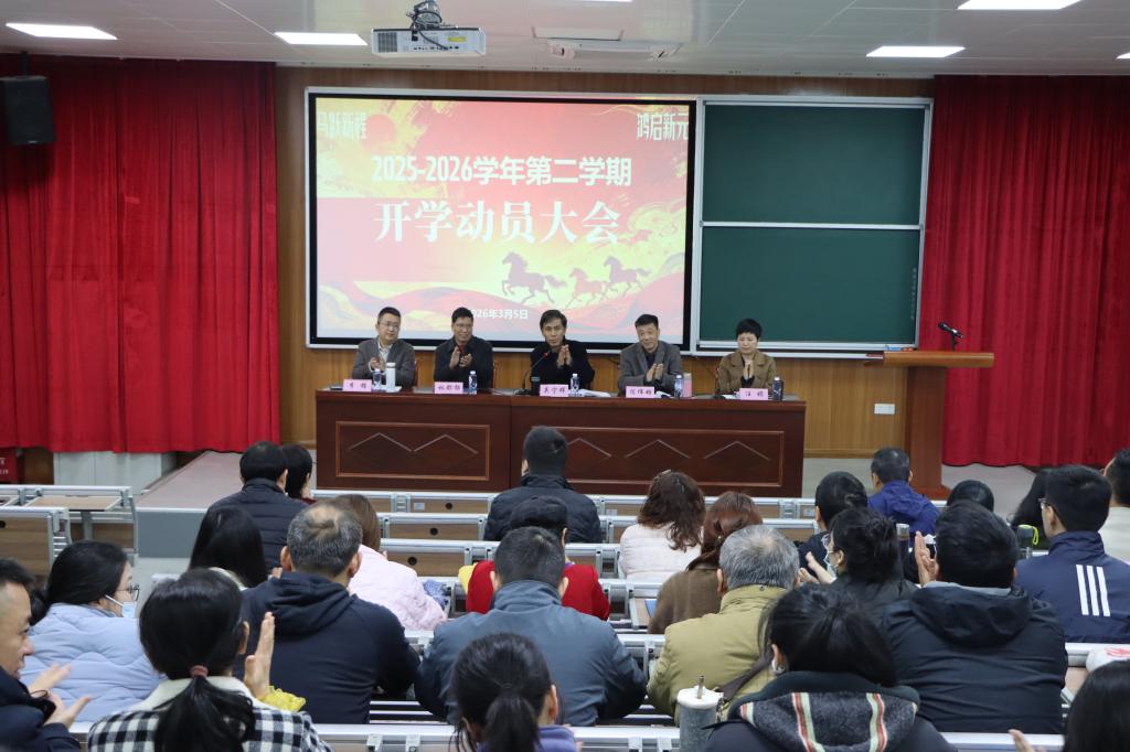 律回春渐,新元肇启。为全面总结上一学年办学成果,科学谋划新学期各项工作,3月6日,职业学院在新阶梯教室召开2025-2026学年第二学期开学动员大会。全体教职员工参加会议,学院班子成员出席会议并作动员讲话。