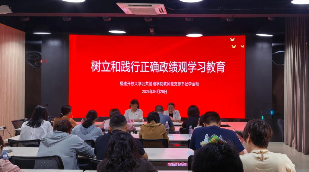 为深入学习贯彻习近平总书记关于树立和践行正确政绩观的重要论述,促进党建与业务工作深度融合,4月28日下午,公共管理学院教师党支部与泉州开放大学教学党支部在泉州开放大学智慧教室联合举办“汲取奋进力量,激发实干精神”主题党日活动。两个支部党员、入党积极分子及教职工代表参加活动。活动由泉州开放大学教学党支部书记李红萍主持。